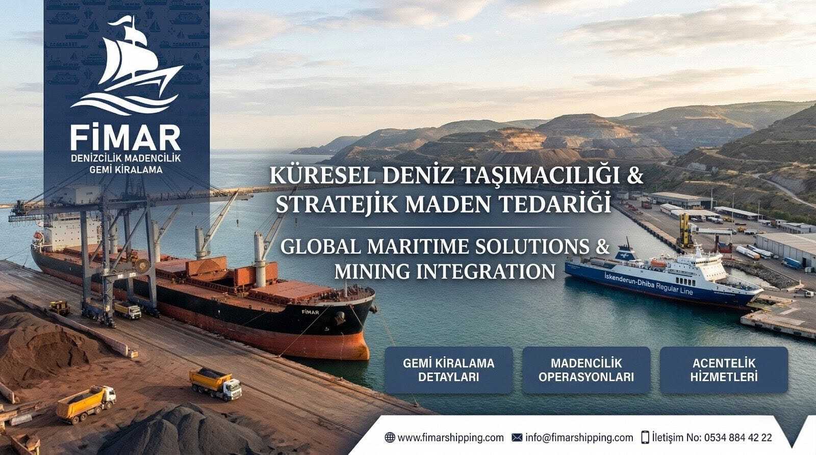 FİMAR DENİZCİLİK MADENCİLİK TAŞIMACILIK LİMAN HİZMETLERİ SAN.TİC.LTD.ŞTİ, 37 yılı aşkın sektör tecrübesine sahip bir ekip tarafından merkezi İskenderun, Dörtyol, Ceyhan, Yumurtalık, Botaş, Mersin limanları olmak üzere tüm Türkiye limanlarında gemilere acentelik hizmeti vermek amacıyla 1989 yılında kurulmuştur. Şirketimiz gerekli yasal izinler ve yetki belgesinin ardından 2014 yılı Temmuz ayında faaliyetlerine başlamıştır.
